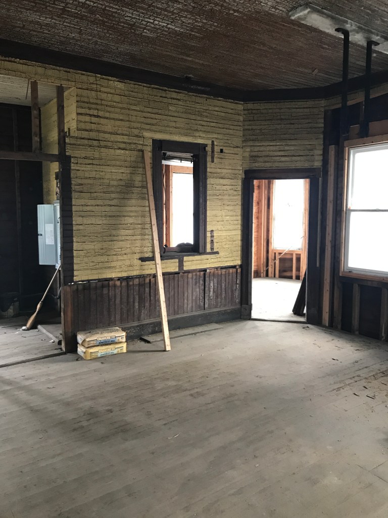 The walls of the historic depot provided a unique challenge. About 75% of the wood was in reasonable condition, but covered in a combination of lead paint and stain. The other 25% of the walls had either been taken off in previous owner activities or water damaged.
