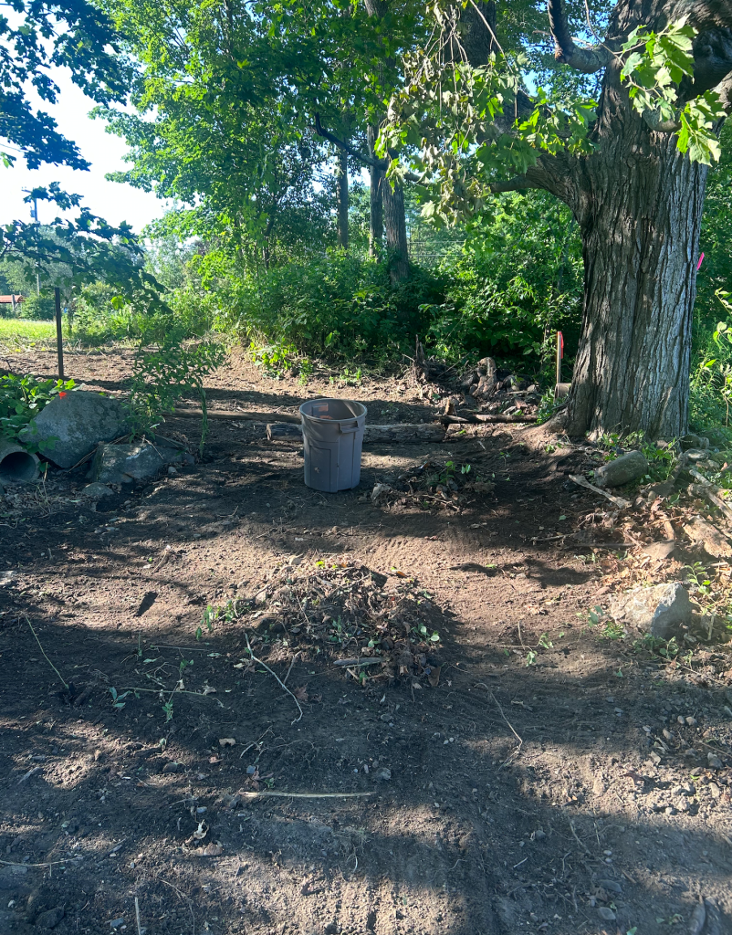 Temporary trail has been cleared from the ballroom parking lot. This will be used during the building move. A bit more work to clear the broken glass and make it tire and paw friendly before opening this path to the public.